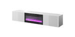 Szafka RTV SLIDE 200K z kominkiem elektrycznym 200x40xH37 cała w białym połysku