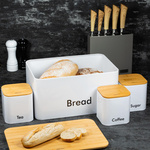 Chlebak z deską, stal-bambus biały Kingho KH-1072