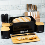 Chlebak w zestawie z pojemnikami, czarny, stal - bambus Kinghoff KH-1086