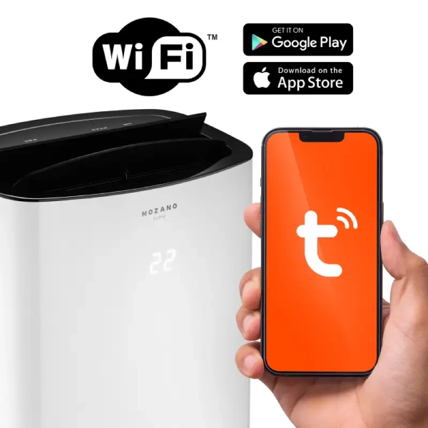 - 3 rodzaje sterowania - dotykowy panel na urządzeniu, pilot z wyświetlaczem oraz WiFi (aplikacja Tuya)