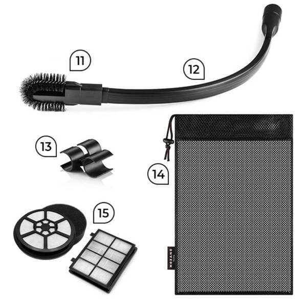 - Szeroki pakiet akcesoriów - aż 14 elementów w zestawie min. turboszczotka, elastyczna ssawka szczelinowa