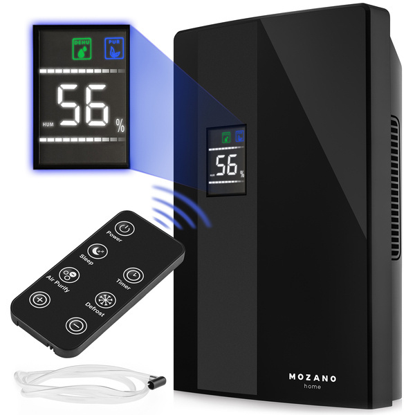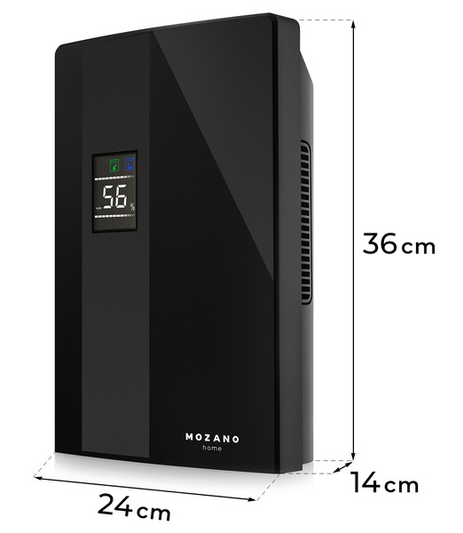 - Automatyczny osuszacz powietrza Mozan Dry Comfort charakteryzuje się mocą 90W oraz pojemnym zbiornikiem 2.2 L. Dzięki pilotowi zdalnego sterowania możesz wygodnie zmieniać ustawienia urządzenia.