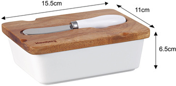 ( ilość produktów: 1249 )Maselniczka ceramiczna, biała, z pokrywką z drewna akacjowego i nożem do smarowania, Klausberg, KB-7784 KB-7785