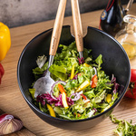 Misa ceramiczna do sałat, czarna, z zestawem stalowych łyżek z drewnianymi uchwytami, Klausberg, KB-7786 KB-7786