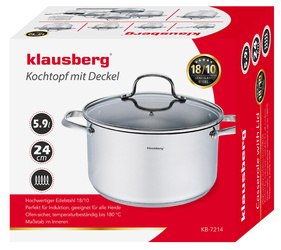 Garnek z pokrywą stal, Ø24cm 5,9l Klausbe KB-7214