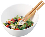 Misa ceramiczna do sałat, biała, z zestawem stalowych łyżek z drewnianymi uchwytami, Klausberg, KB-7787 KB-7787