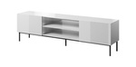 Szafka RTV ABETO na czarnym stelażu ze stali 200x42x60 biały/biały połysk
