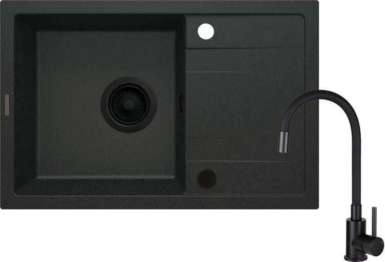 Zlewozmywak granitowy z baterią 1-komorowy z ociekaczem (ZRCPG113) - Deante