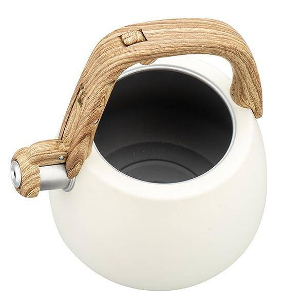Czajnik ze stali nierdzewnej z gwizdkiem, biały z drewny uchwytem, pojemność 2,5L, Klausberg, KB-7775 KB-7775