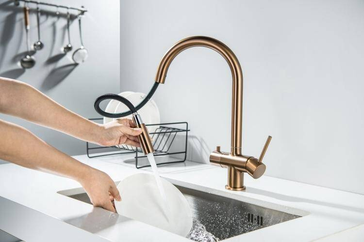 - BATERIA Z PODŁĄCZENIEM DO WODY FILTROWANEJBATERIA Z WYCIĄGANĄ WYLEWKĄ