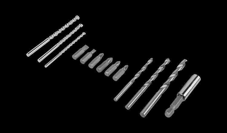 W zestawie: 13 akcesoriów, ładowarka sieciowa, akumulator, instrukcja obsługi