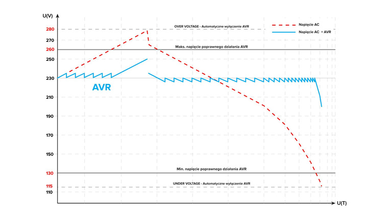 Zabezpieczenia: przed przeciążeniem, zwarciem, zbyt wysokim / niskim napięciem, przegrzaniem