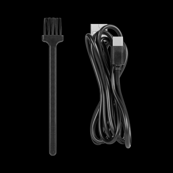 W zestawie: kabel USB (143 cm), pędzelek do czyszczenia, nakładka ochronna