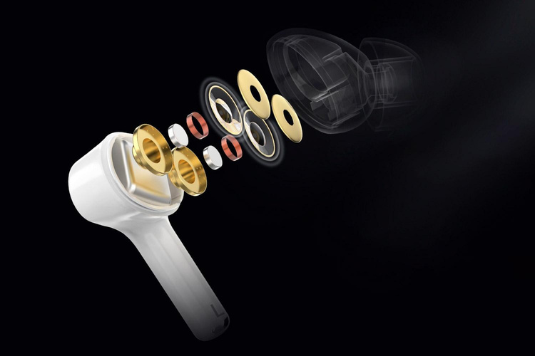 W zestawie: gumki douszne (rozmiar S, L), etui z funkcją ładowania, kabel USB, instrukcja obsługi