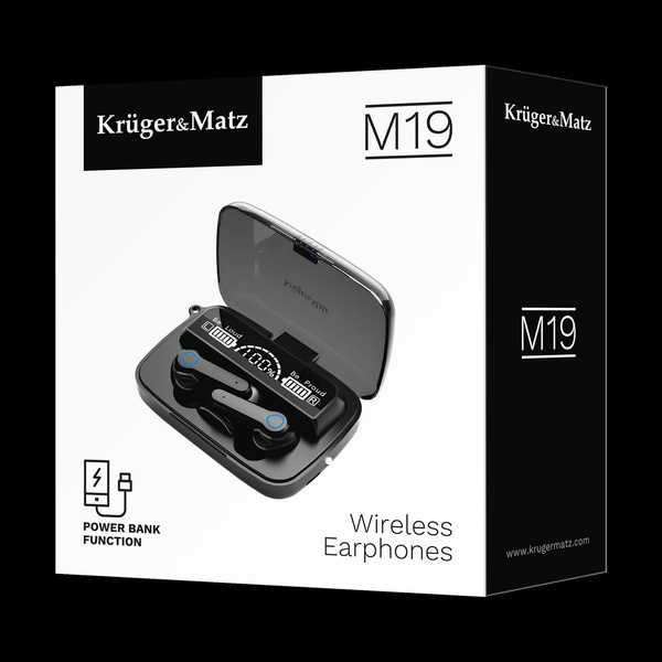 Bezprzewodowe słuchawki douszne z power bankiem Kruger&Matz M19