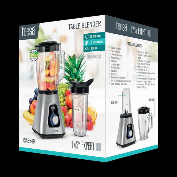 Blender kielichowy EASY EXPERT GO 1300W , szklany kielich 1,5L + kubek podróżny 600 ml