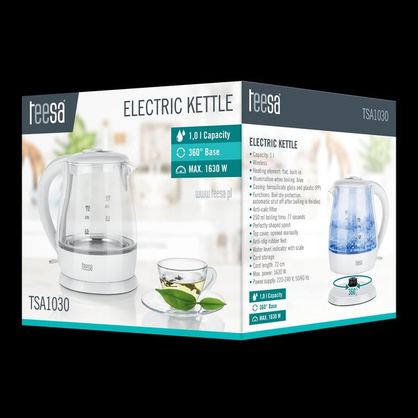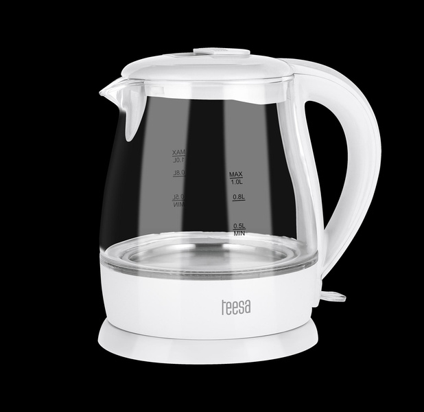 Czajnik elektryczny TEESA, szklany, 1650 W, biały, 1 L