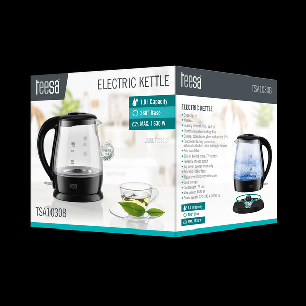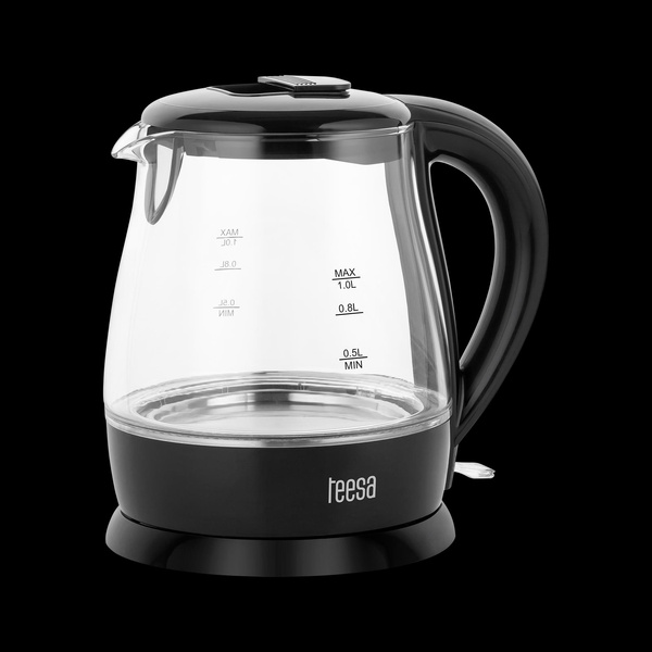Czajnik elektryczny TEESA, szklany, 1650 W, czarny, 1 L