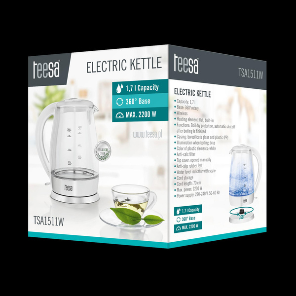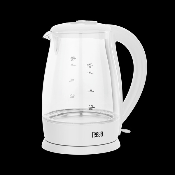 Czajnik elektryczny TEESA, szklany, 2000 W, biały, 1,7 L