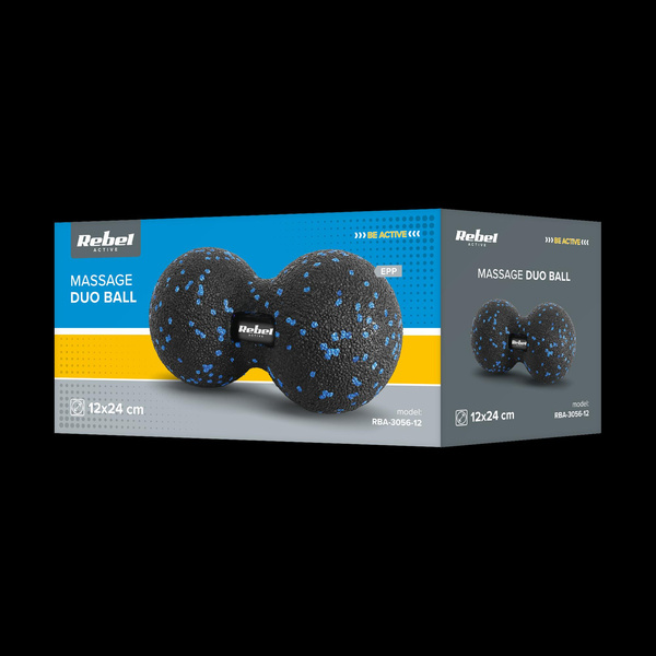 Duoball podwójna piłka do masażu 12cm, kolor czarno-niebieski, materiał EPP, REBEL ACTIVE
