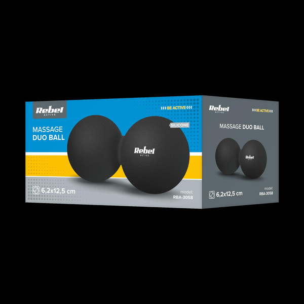 Duoball podwójna piłka do masażu 6.2cm, kolor czarny, materiał silikon, REBEL ACTIVE