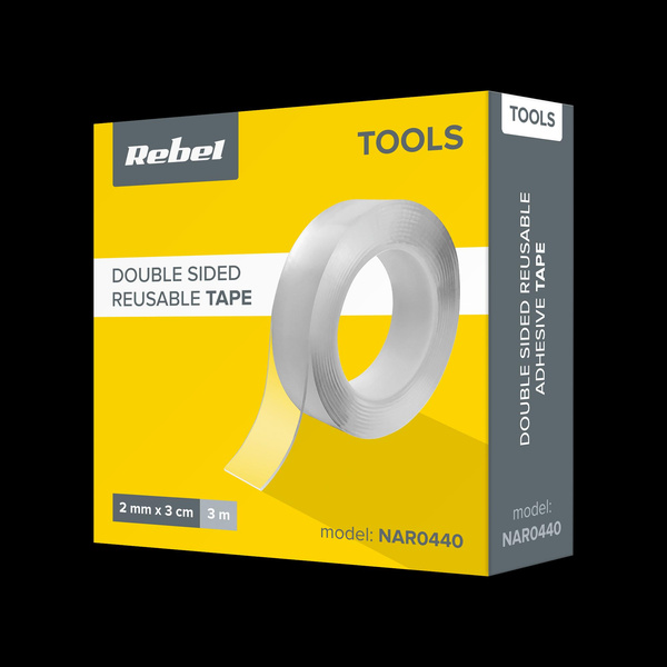 Dwustronna taśma montażowa nano wielokrotnego użytku REBEL (2 mm x 30 mm x 3 m) transparentna