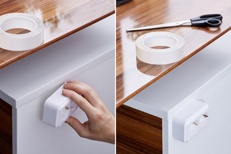 4. Umieść na powierzchni do której ma być przyklejony. WAŻNE: Mocno dociśnij klejony obszar przez 15-30 sekund, aby zapewnić prawidłowy montaż.