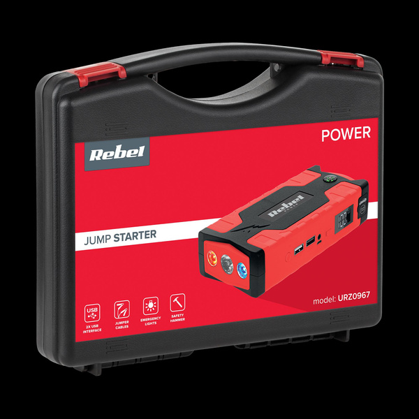 W zestawie: przewody rozruchowe, kabel 3 w 1 (Micro USB, USB-C, Lightning), ładowarka samochodowa, ładowarka sieciowa, instrukcja obsługi