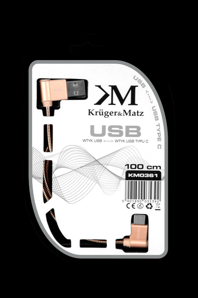 Kabel USB - wtyk kątowy typu C 1m 3A Kruger&Matz