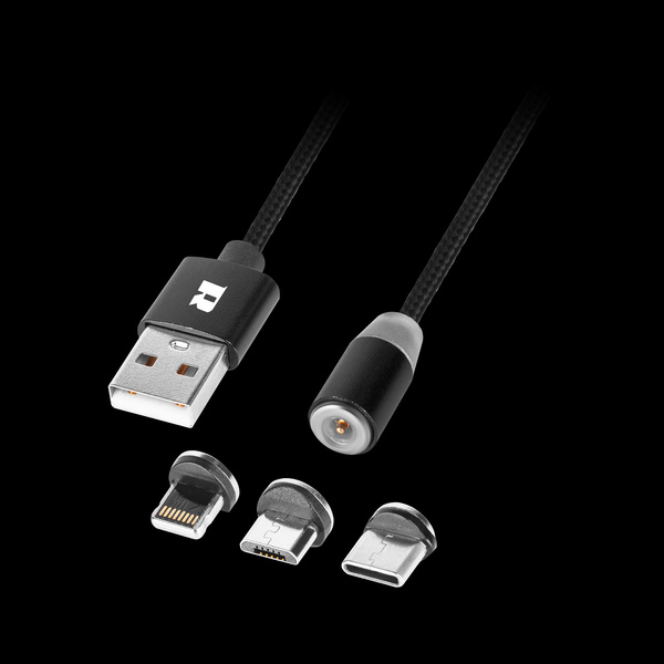 Kabel USB magnetyczny 3w1 microUSB, USB typu C, Lightning 100 cm czarny