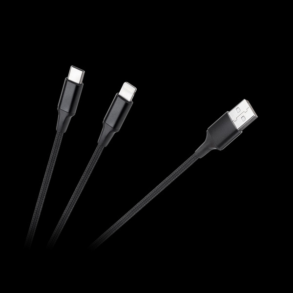 Kabel wtyk USB A - wtyk USB C/ wtyk lightningh (2w1) 1m