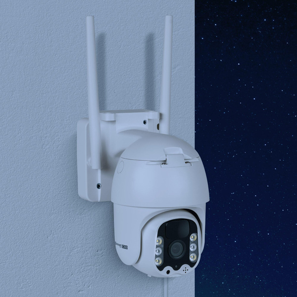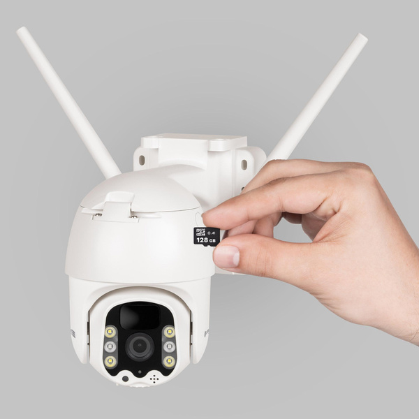 W zestawie: kamera, panel solarny, uchwyt panelu solarnego, śrubokręt, śruby, kołki