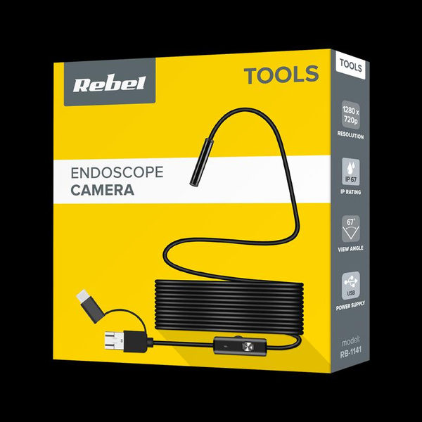 W zestawie: kamera, końcówki (haczyk, magnes, lusterko boczne), instrukcja obsługi