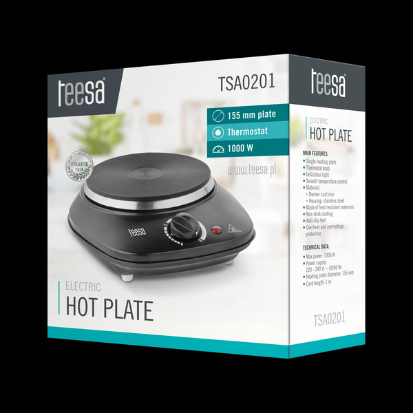 Kuchenka elektryczna przenośna pojedyncza czarna 1000W