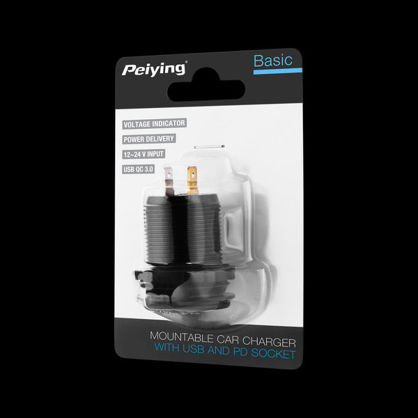Ładowarka samochodowa USB+USB typu C z funkcją Quick Charge, Power Delivery i miernikiem napięcia 48W