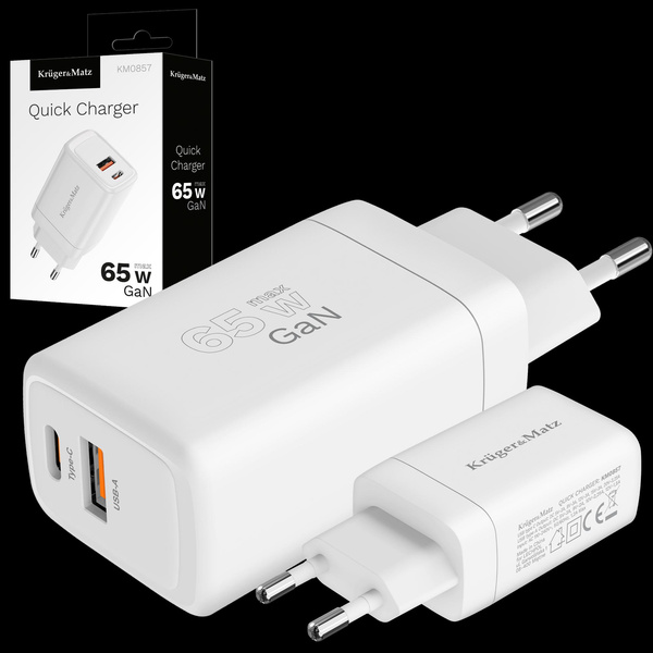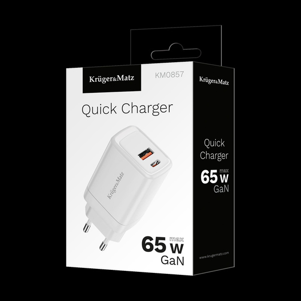 Ładowarka sieciowa Kruger&Matz 65 W GaN z funkcją Power Delivery i Quick Charge