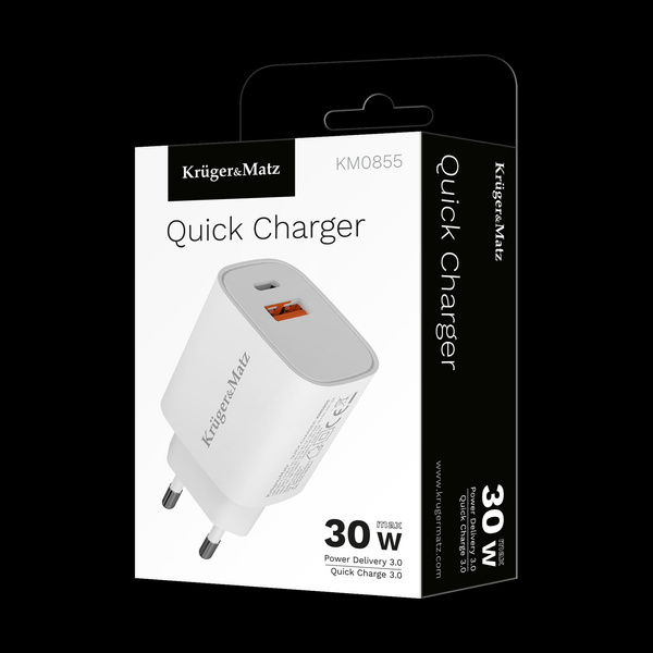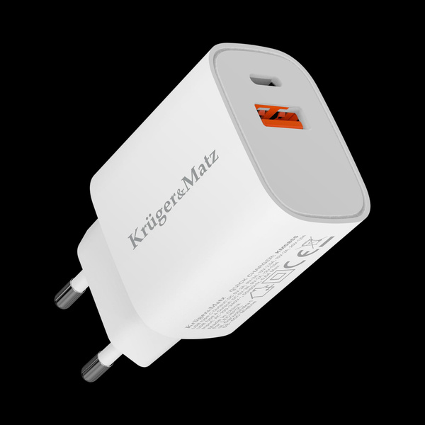 Ładowarka sieciowa Kruger&Matz GaN dual USB z funkcją Power Delivery i Quick Charge