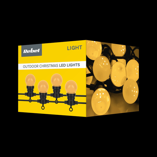 Lampki zewnętrzne Rebel, ciepłe białe- kule (girlanda), 230V