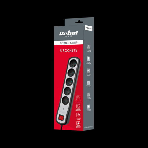 Listwa zasilająca Rebel 5 gniazd z przełącznikiem (3m, 3x1,5mm)