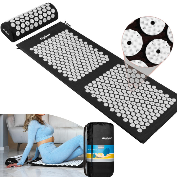 Mata zdrowotna z kolcami do akupresury z poduszką, 130x50cm, szare kolce, Rebel Active