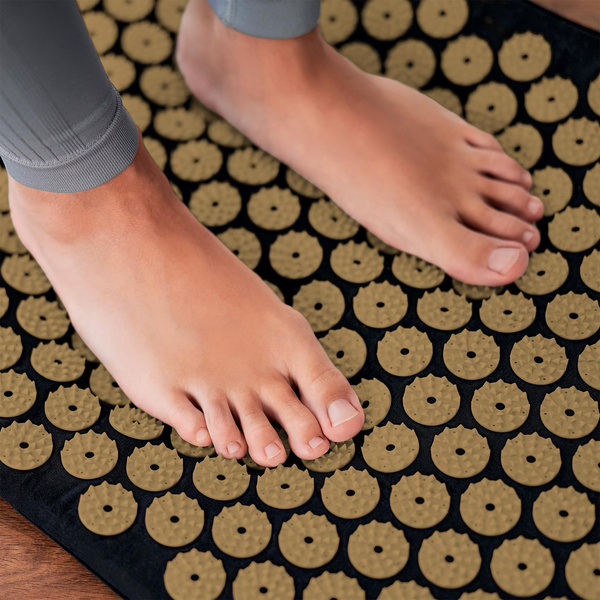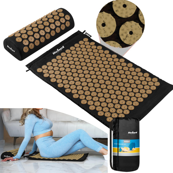 Mata zdrowotna z kolcami do akupresury z poduszką, 72x42cm, złote kolce, Rebel Active