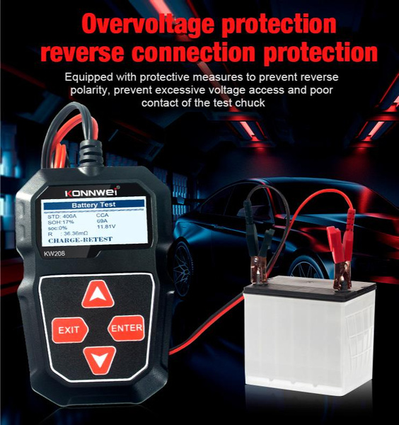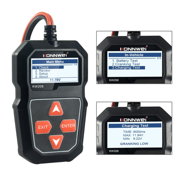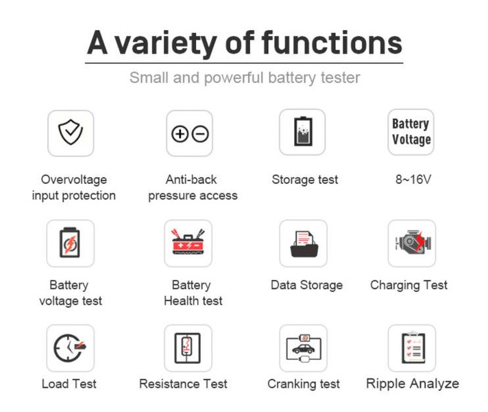 Tryby: zwykły test, test rozruchu, test ładowania, test stanu akumulatora