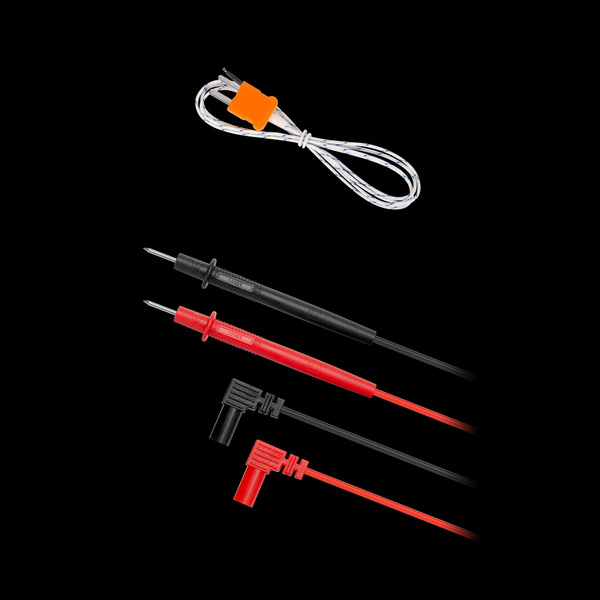 W zestawie: miernik, przewody pomiarowe, termopara typu K, instrukcja