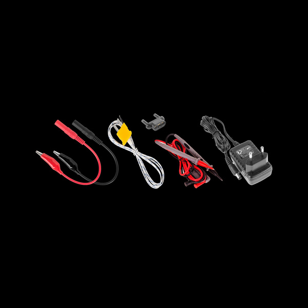 Akcesoria: przewody pomiarowe, krótkie przewody z krokodylkami, sonda pomiaru temperatury, gniazdo pomiarowe, zasilacz sieciowy