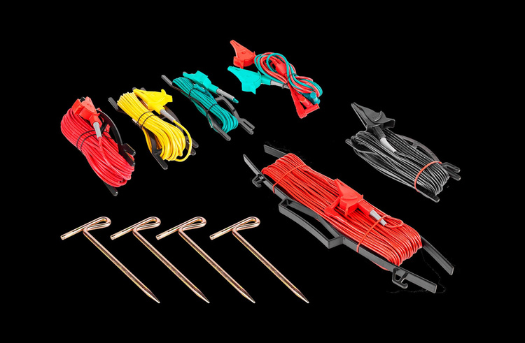 Akcesoria: baterie, 7x przewód pomiarowy z krokodylkiem, 2x elektroda pomiarowa, etui