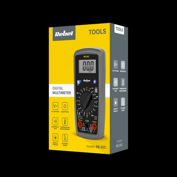 W zestawie: miernik, przewody pomiarowe, termopara typu K, instrukcja