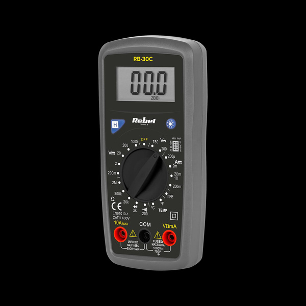 Rezystancja: 200 Ohm, 2 kOhm, 20 kOhm, 200 kOhm, 2 MOhm ±(1%+4)