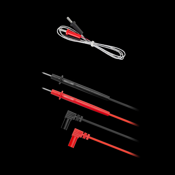 W zestawie: miernik, przewody pomiarowe, termopara typu K, instrukcja