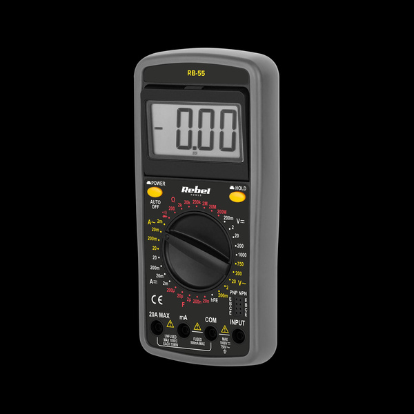 Rezystancja: 200 Ohm, 2 kOhm, 20 kOhm, 200 kOhm, 2 MOhm, 20 MOhm, 200 MOhm