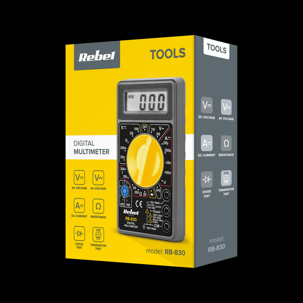 Natężenie prądu DC: 200 µA, 2000 µA, 20 mA, 200 mA, 10 A ±(2%+10)